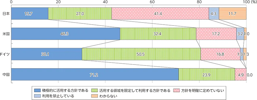 総務省の「情報通信白書 令和6年版」によると、国内企業の約4割が生成AIを業務で活用する方針を固めています。