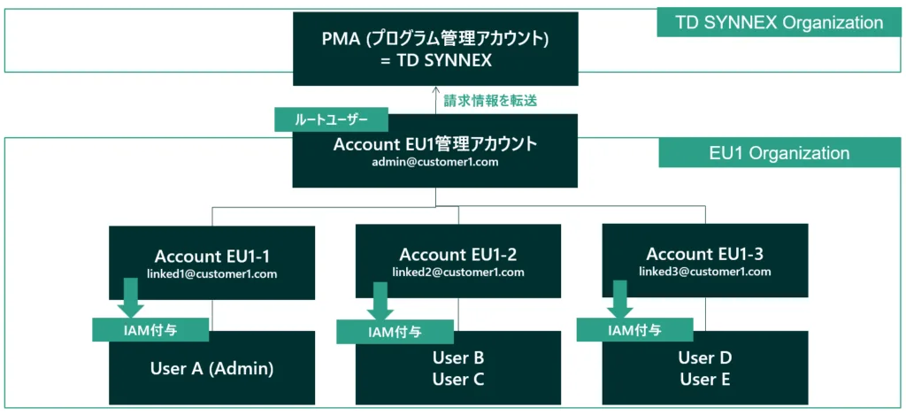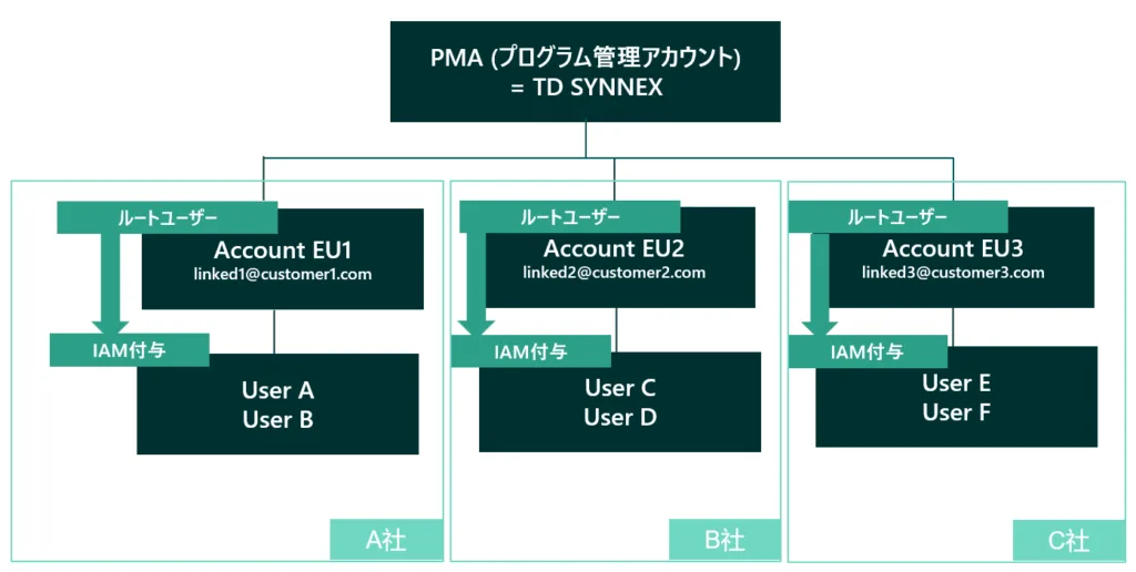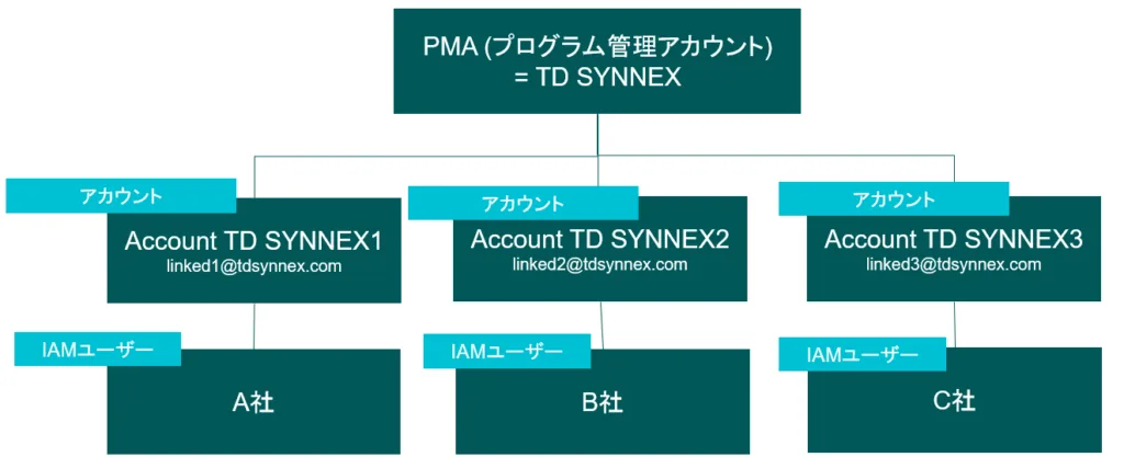 どちらも、ディストリビューターやソリューションプロバイダーが管理する「プログラム管理アカウント(PMA)」がAWS Organizationsの管理アカウントとなり、AWS社からの請求もこのPMA宛てに実施されます。