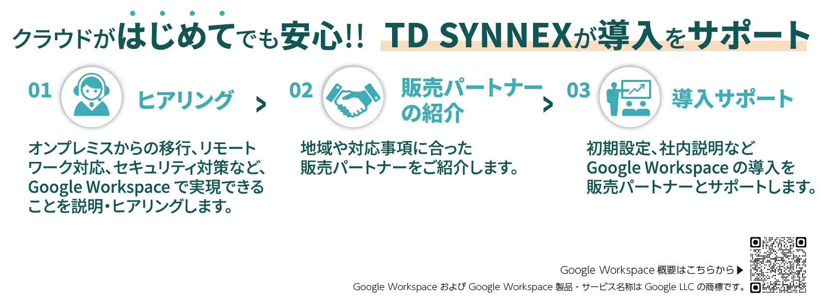 なお、TD SYNNEX アドバンスドソリューション部門 ハイブリッドクラウドPM 本部 マルチクラウドビジネス開発部 部長 大坪武史氏によれば、同社では Google Workspace の提案や導入支援に際しては、万全のサポート体制を敷いているという。