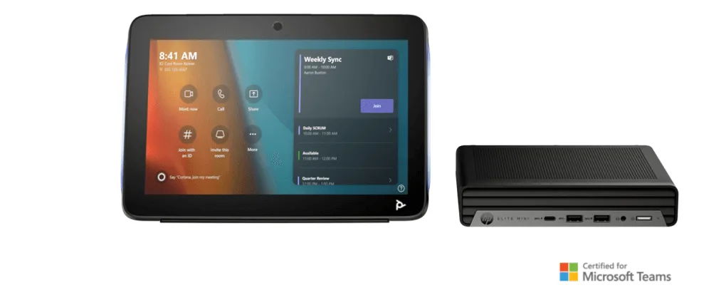 HPの特長である、高いセキュリティ機能を搭載した、強力で堅牢かつ柔軟なPCベースの Microsoft Teams Rooms ソリューションを構築できます。本体の操作は、別売のPoly TC10から、タッチ操作で行うことができるので直感的に利用することができます。