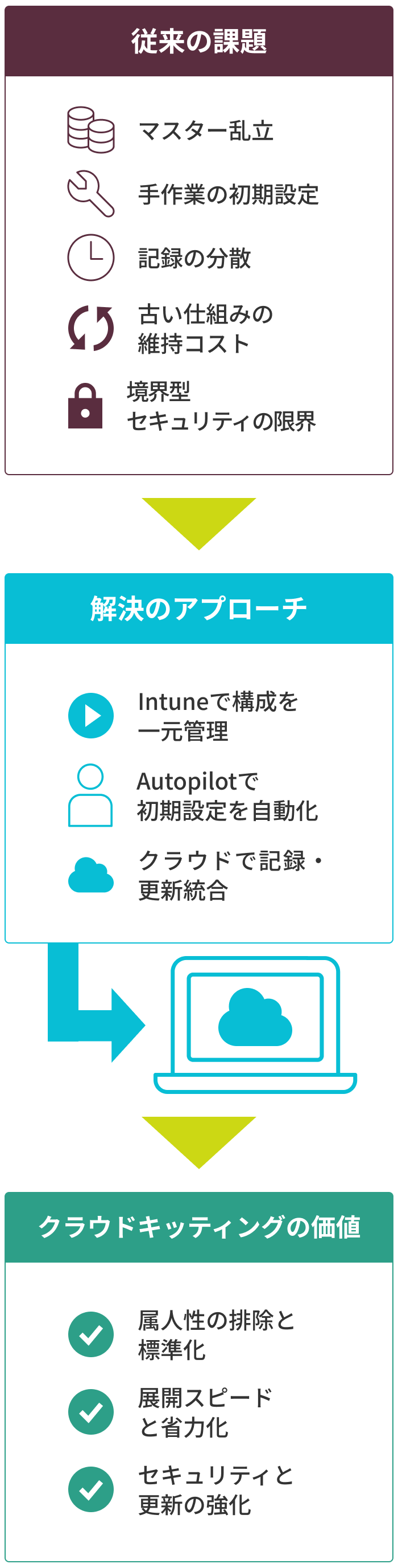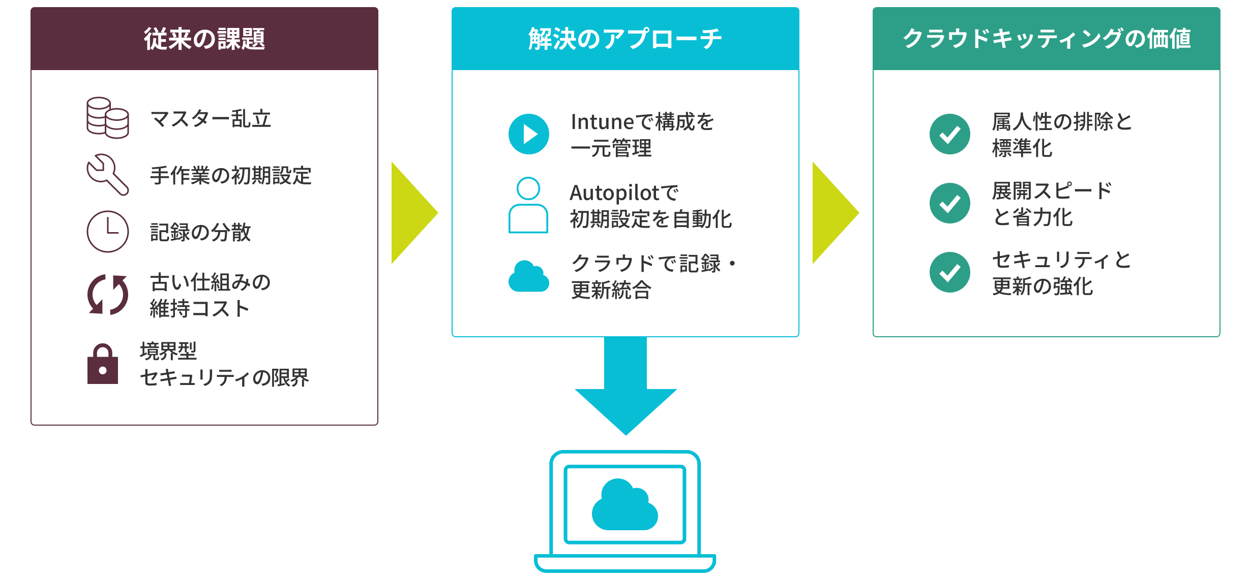 • AutopilotとIntuneによるクラウド管理で、設定やアプリ配信を一元化