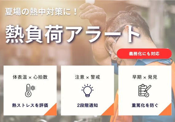 REMONYの熱負荷アラートは、体表温度と心拍数のデータをもとに深部体温の上昇を予測し、熱中症のリスクをお知らせします。この機能により、夏場の健康管理を強化し、重篤化のリスクを避けることができます。