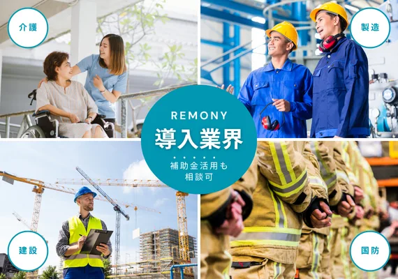 見守り課題は全業界に共通するテーマです。REMONYは介護、製造、建設、国防といった多様な業界での導入実績があり、あらゆるシーンに対応します。また補助金を活用した導入も可能で、サポート部門がしっかりと支援いたします。